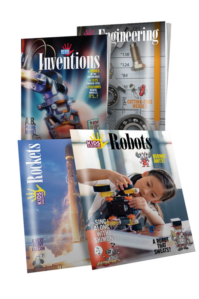 The massive growth that’s occurring in STEM-related fields has created the need to teach engineering concepts, and in particular the engineering design process, at the elementary and middle school levels. Inspired by NGSS Engineering Design standards for grades 6-8, this collection of 10 issues includes an overview to Engineering, inventions such as rockets and robots, and inventors such as Thomas Edison and the Wright Brothers. In true Kids Discover fashion, this themed set blends history and science and presents a case that engineering design is less about technology, and more about human ingenuity.