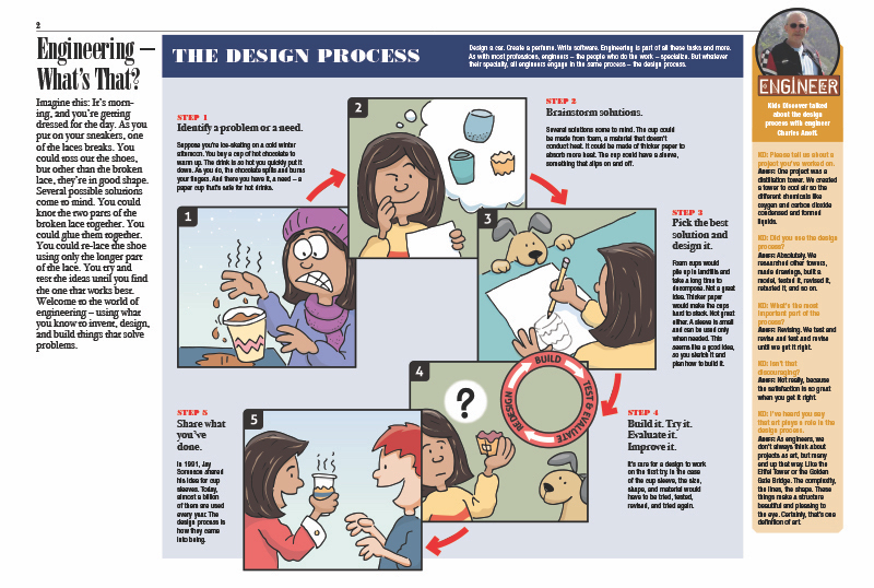 The massive growth that’s occurring in STEM-related fields has created the need to teach engineering concepts, and in particular the engineering design process, at the elementary and middle school levels. Inspired by NGSS Engineering Design standards for grades 6-8, this collection of 10 issues includes an overview to Engineering, inventions such as rockets and robots, and inventors such as Thomas Edison and the Wright Brothers. In true Kids Discover fashion, this themed set blends history and science and presents a case that engineering design is less about technology, and more about human ingenuity.